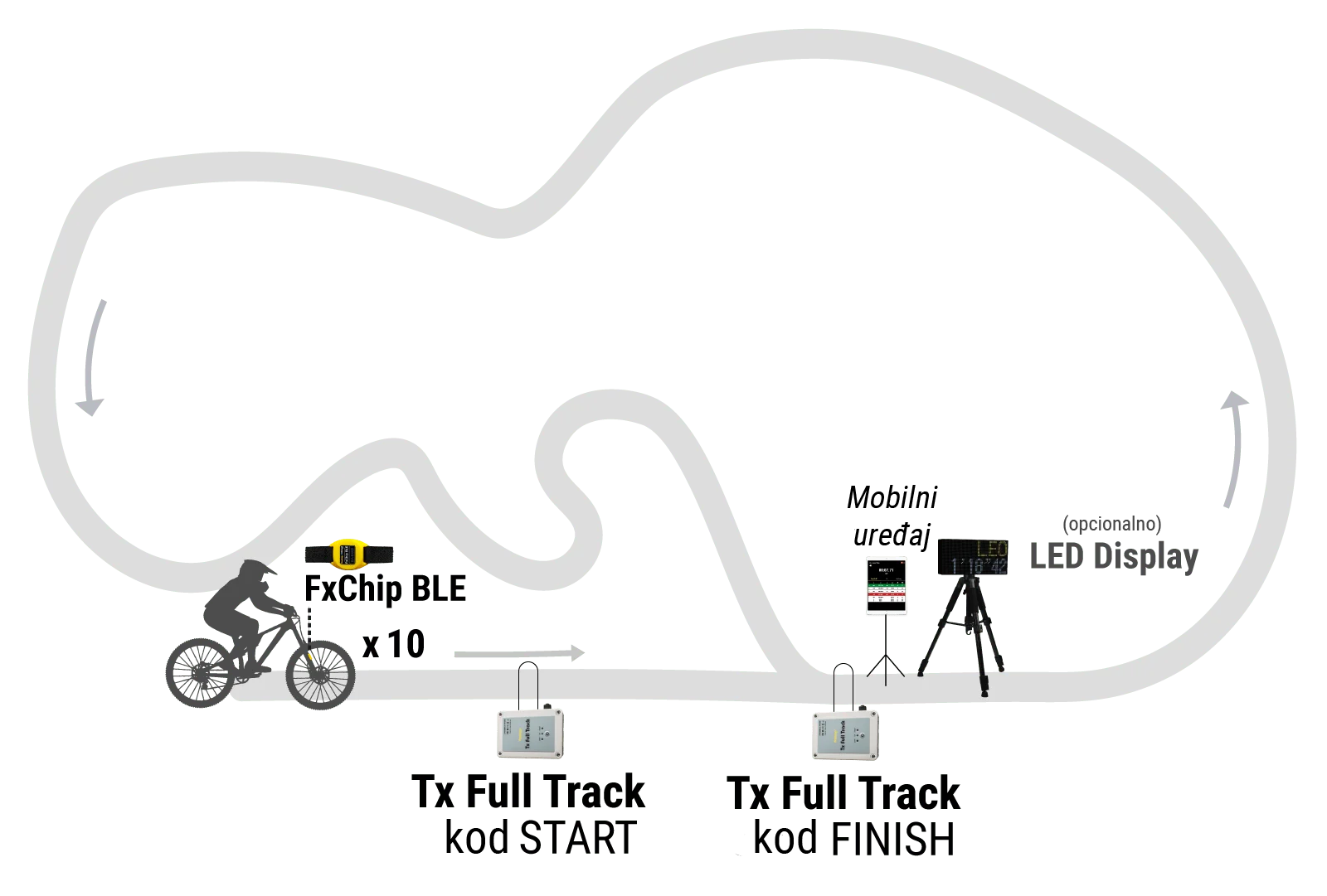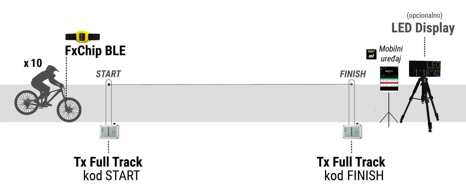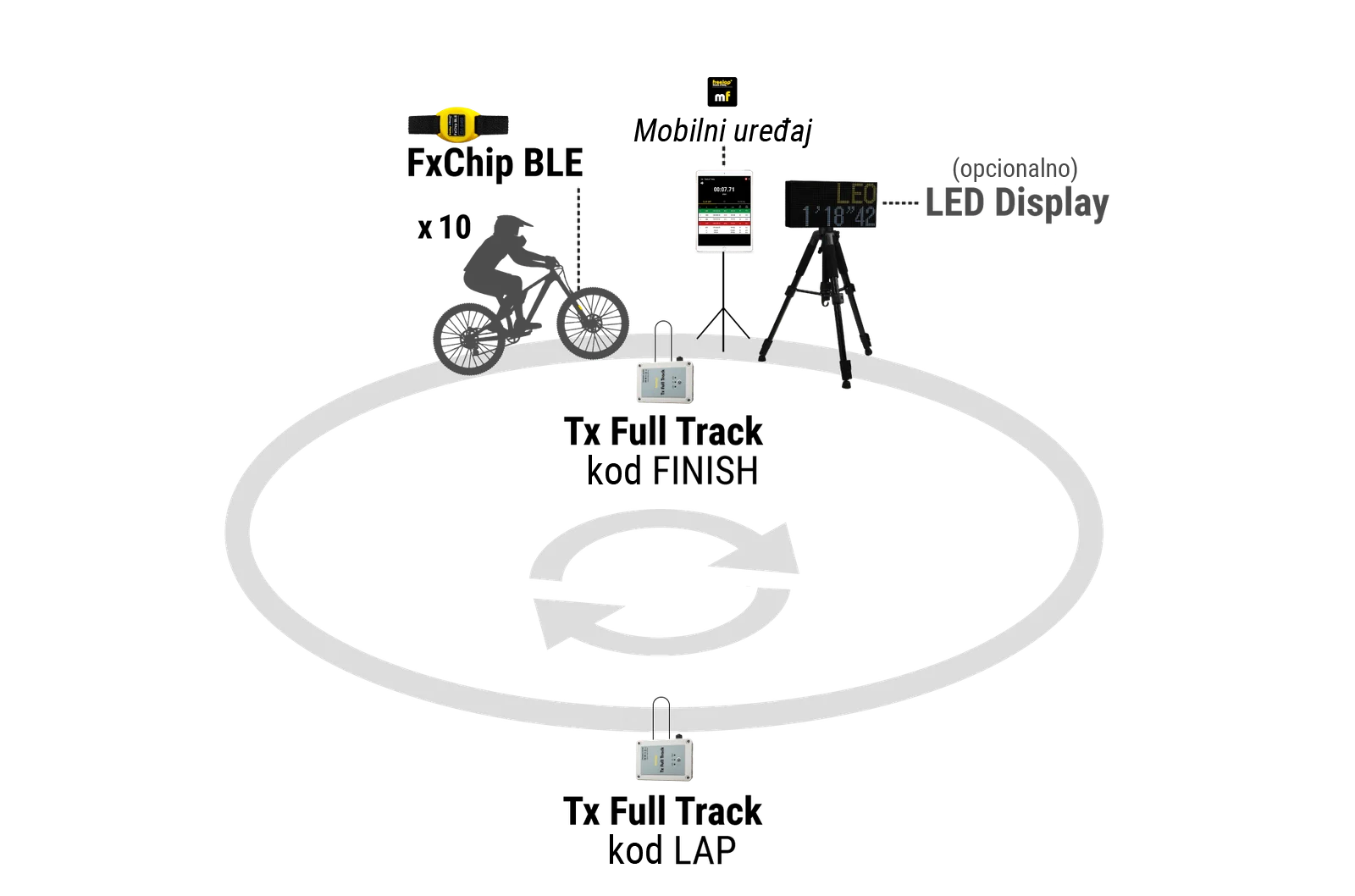 • Za mjerenje vremena za više vozača istovremeno: dodajte još FxChip BLE + FxMTB